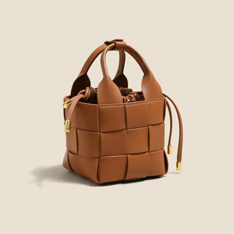 • New Designer Weave Bucket Hand Bag Women Cowhide Leather Shoulder Bag Retro Style Ladies Handbags Crossbody 2 in 1 Sets