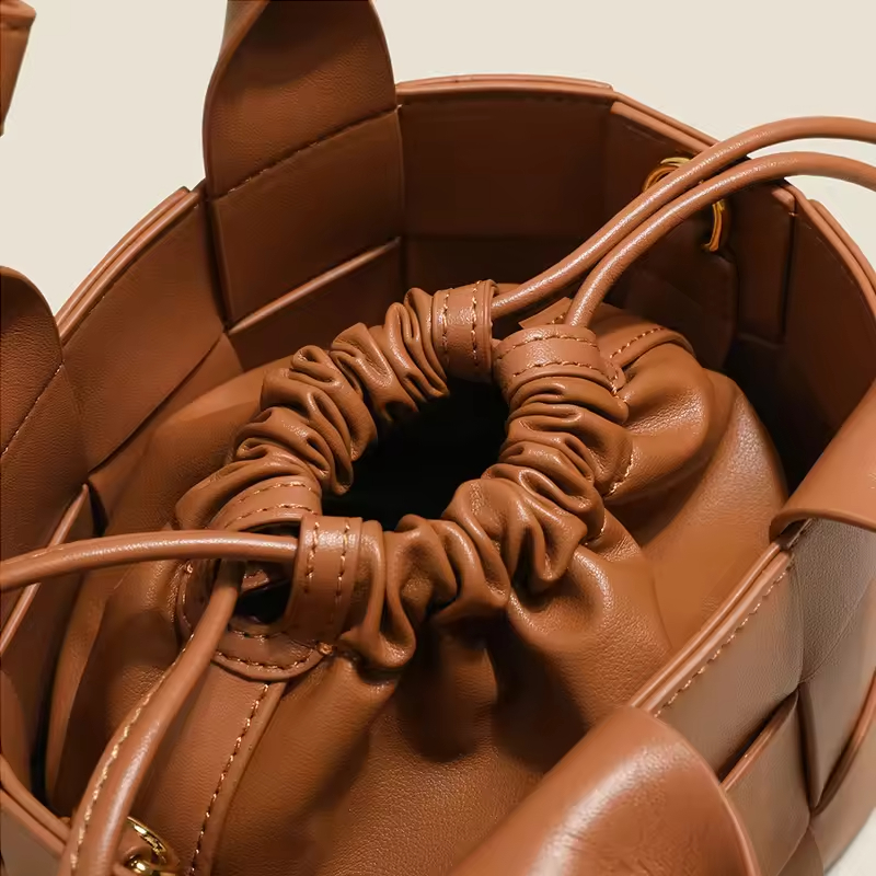 New Designer Weave Bucket Hand Bag Women Cowhide Leather Shoulder Bag Retro Style Ladies Handbags Crossbody 2 in 1 Sets
