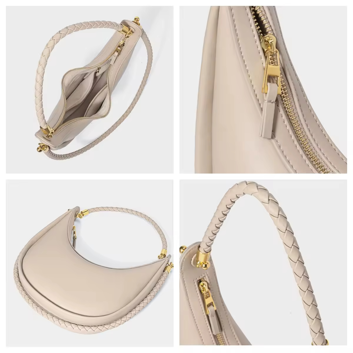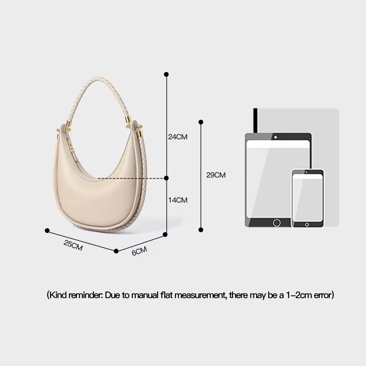 • 2025 Customized Women's Casual Carry Handbags New Genuine Leather Half Moon Armpit Bag with Removable Shoulder Strap